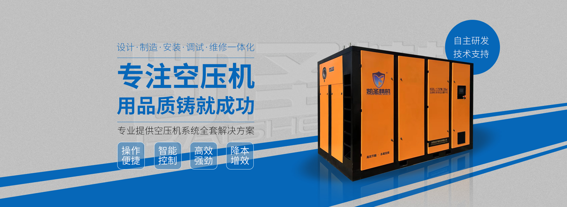 合肥凱圣節(jié)能科技有限公司是從事永磁變頻螺桿壓縮機系統的設計、制造、安裝、調試、維修與一體的公司。 在多年的螺桿空壓機研發(fā)與推廣歷程里,凱圣聚集和培養了大量壓縮機技術設計和管理人員,迅速發(fā)展成為集研究、生產、銷售、服務等環(huán)節(jié)為一體、嚴格按照標準執(zhí)行的企業,公司成立開始,即以滿足客戶的實際需求為己任,大力開拓國內外節(jié)能型空壓機市場,并始終保持創(chuàng)新精神,全力研發(fā)更為節(jié)能的螺桿式空壓機,努力站在空壓機節(jié)能領域的排頭位置。 應用范圍:公司產品廣泛應用于機械、輕工、紡織、食品、石油、化工、冶金、礦山、電力、城建、醫學研究和科研等各行業中,將為節(jié)約能源做出巨大貢獻。公司秉承“信譽至上,...